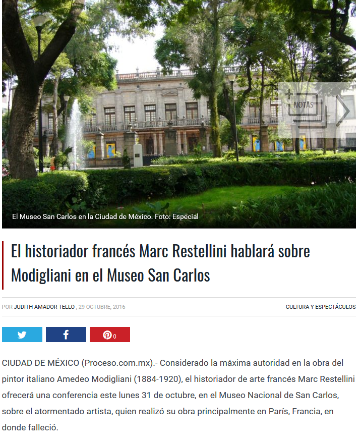 CIUDAD DE MÉXICO (Proceso.com.mx).- Considerado la máxima autoridad en la obra del pintor italiano Amedeo Modigliani (1884-1920), el historiador de arte francés Marc Restellini ofrecerá una conferencia este lunes 31 de octubre, en el Museo Nacional de San Carlos, sobre el atormentado artista, quien realizó su obra principalmente en París, Francia, en donde falleció.