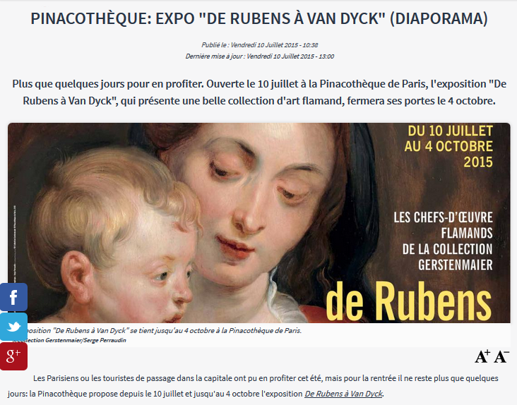 Les Parisiens ou les touristes de passage dans la capitale ont pu en profiter cet été, mais pour la rentrée il ne reste plus que quelques jours: la Pinacothèque propose depuis le 10 juillet et jusqu’au 4 octobre l’exposition De Rubens à Van Dyck.